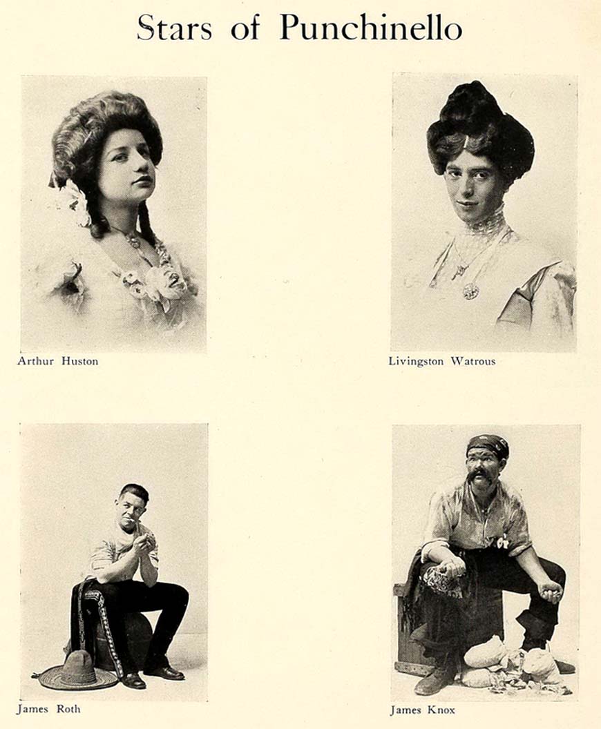 He was a member of the school's drama club, Punchinello, and appeared in several productions playing the role of a young lady. For Excellence in Dramatics he was made a "Companion" in 1909 and an "Officer" in 1910.