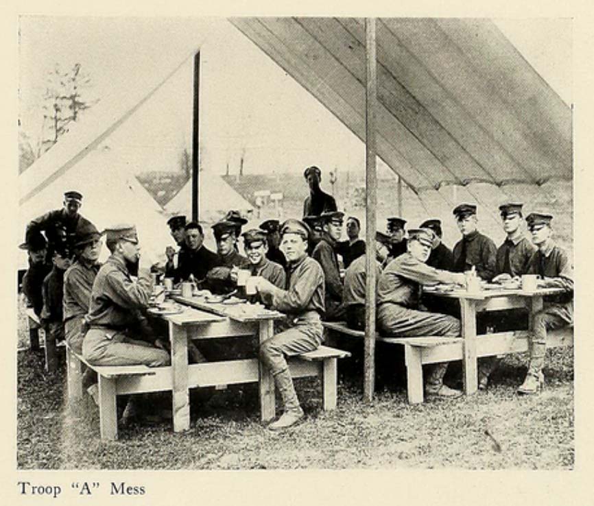 Arthur was a Private in Troop "A". He played third base for his troop's baseball team and was a member of Hunt Club, which appears to have been a fox hunting club with hounds.